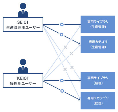 各部署ごとにユーザーと権限設定を設計し、運用時に活用。